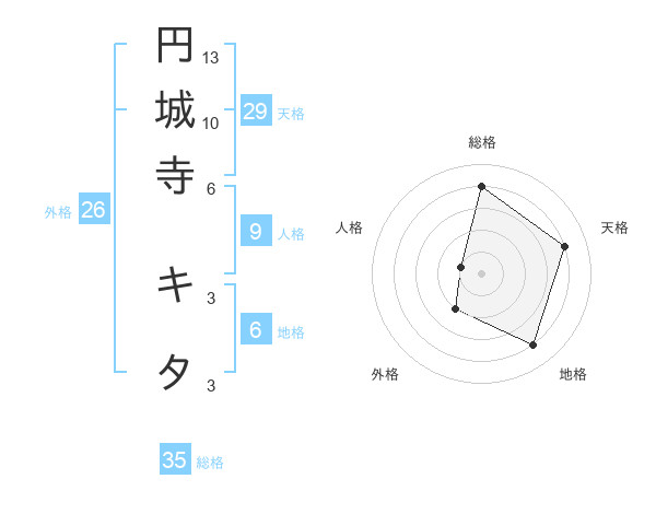 円城寺 キタさんを姓名の画数から五運を鑑定