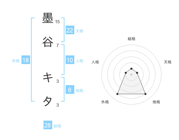 墨谷 キタさんを姓名の画数から五運を鑑定