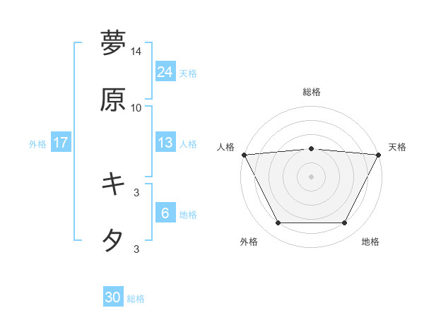夢原 キタさんの総格は30画の2点!