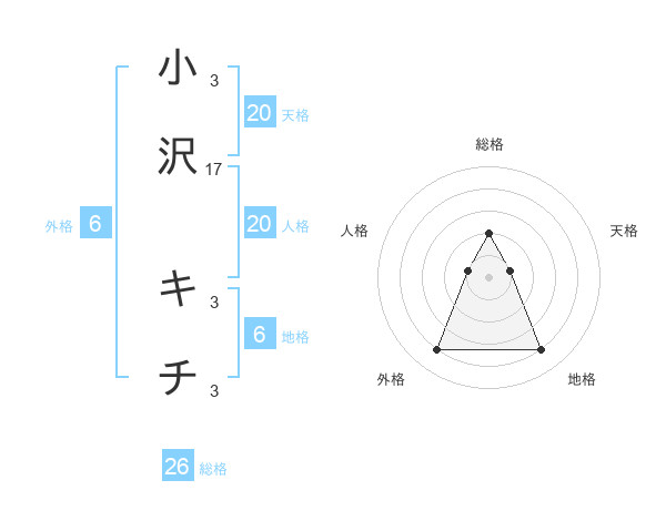 小沢 キチさんの総格は26画の2点!