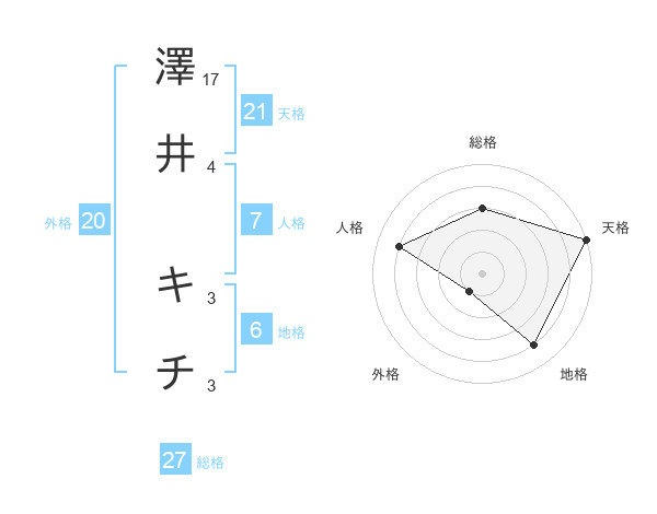 家系が持つ宿命的な運勢を表します。祖先から受け継いだ苗字ですので自分の力が及びません。家柄を象徴します。