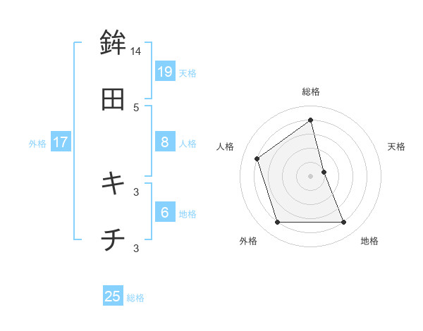 鉾田 キチさんの総格は25画の4点!