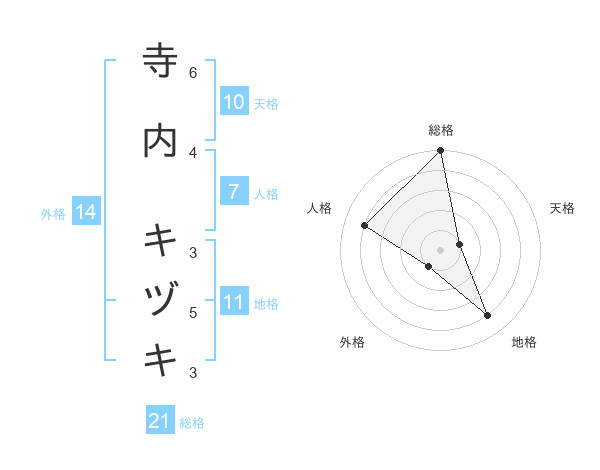 寺内 キヅキさんを姓名の画数から五運を鑑定