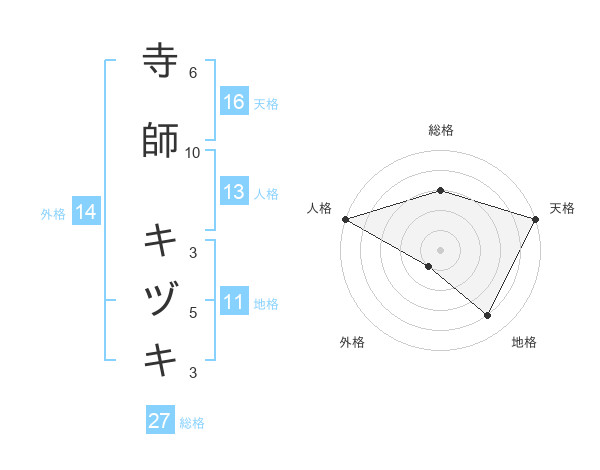 寺師 キヅキさんの天格は16画の5点!