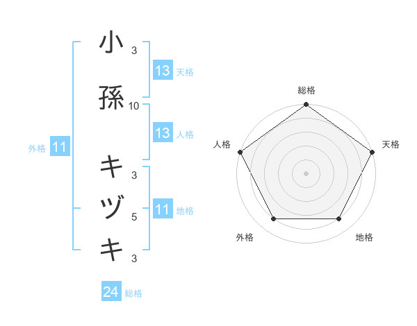 小孫 キヅキさんの総格は24画の5点!