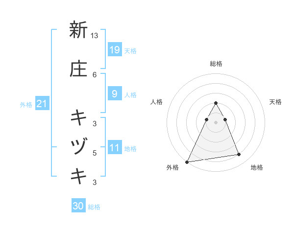 新庄 キヅキさんの総格は30画の2点!