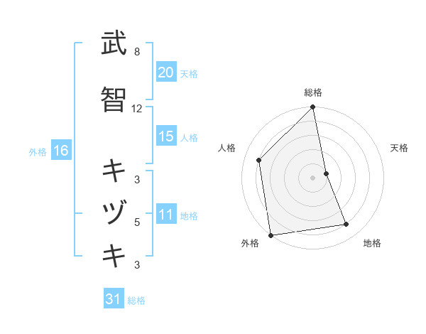 武智 キヅキさんの総格は31画の5点!