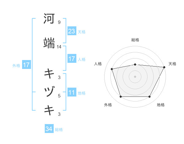 河端 キヅキさんの天格は23画の5点!