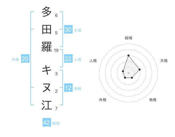 多田羅 キヌ江さんを姓名の画数から五運を鑑定