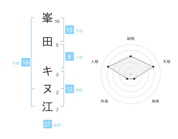峯田 キヌ江さんの総格は27画の3点!