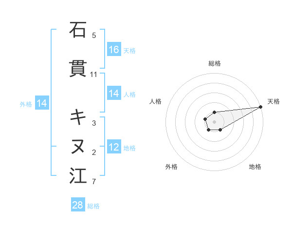 石貫 キヌ江さんを姓名の画数から五運を鑑定