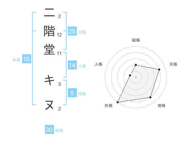 二階堂 キヌさんの総格は30画の2点