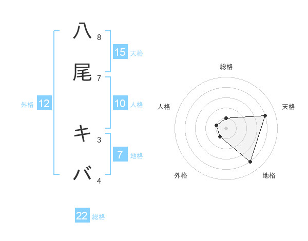 八尾 キバさんの天格は15画の4点!