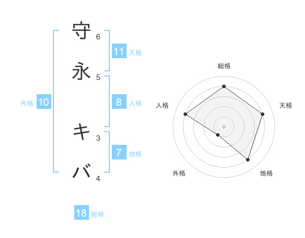 守永 キバさんの天格は11画の4点!