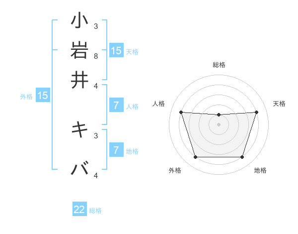 小岩井 キバさんを姓名の画数から五運を鑑定