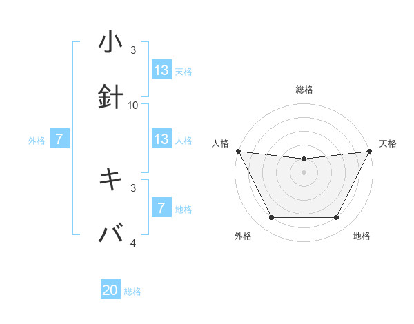 小針 キバさんの天格は13画の5点!