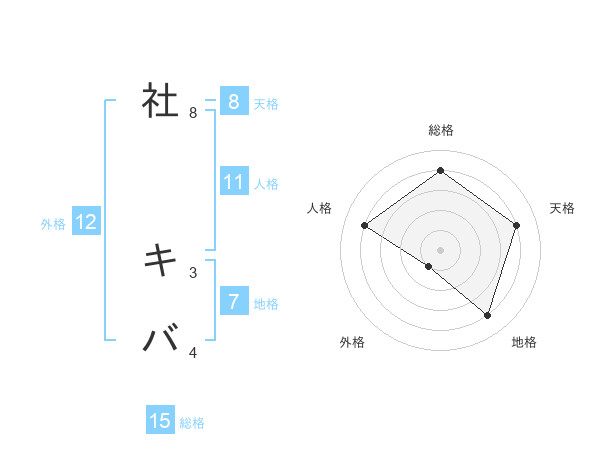 社 キバさんの総格は15画の4点!