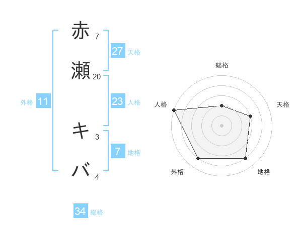 赤瀬 キバさんの総格は34画の2点!