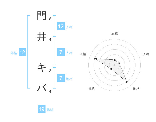 門井 キバさんの総格は19画の1点!