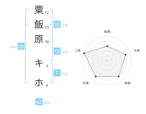 粟飯原 キホさんを姓名の画数から五運を鑑定