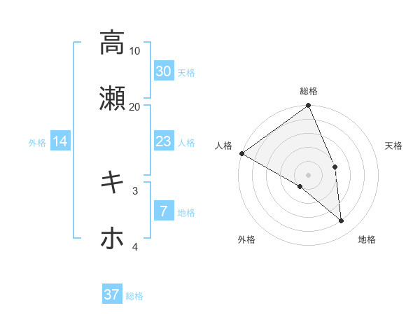 高瀬 キホさんの総格は37画の5点!