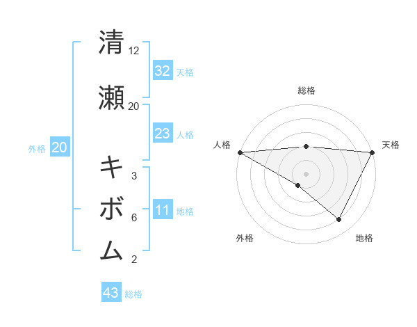 清瀬 キボムさんの天格は32画の5点!