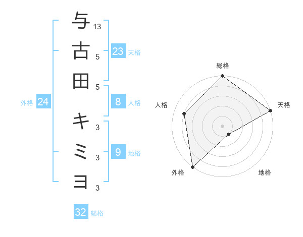 与古田 キミヨさんを姓名の画数から五運を鑑定