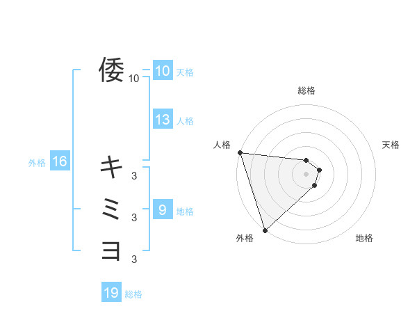 倭 キミヨさんの総格は19画の1点!