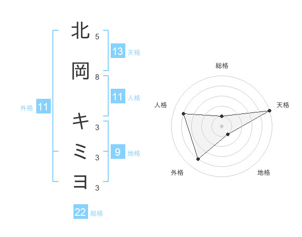 北岡 キミヨさんの天格は13画の5点!