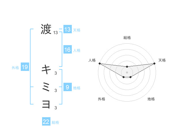 渡 キミヨさんの外格は19画の1点!
