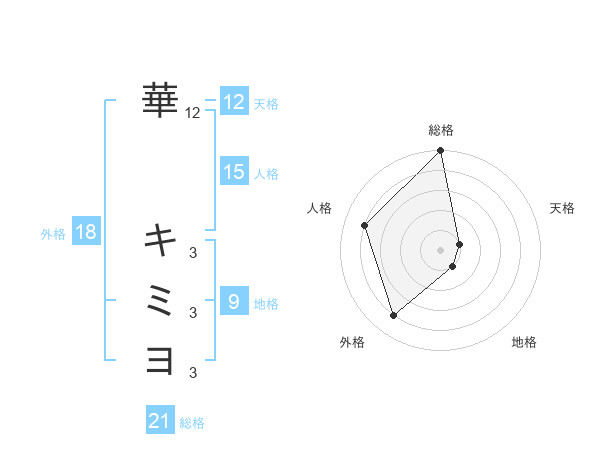 華 キミヨさんの総格は21画の5点!