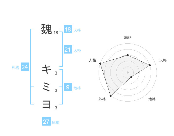 魏 キミヨさんの総格は27画の3点!