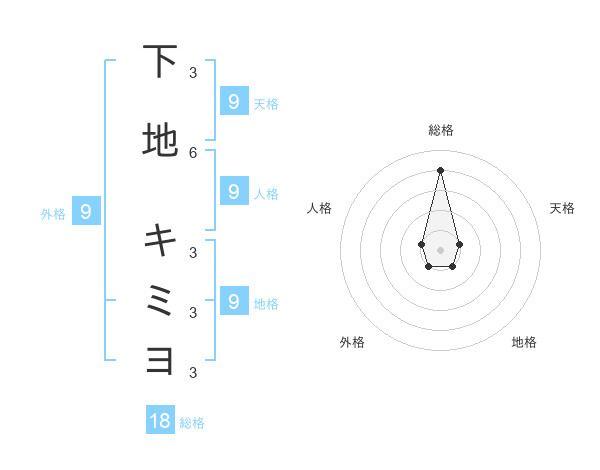 下地 キミヨさんを姓名の画数から五運を鑑定