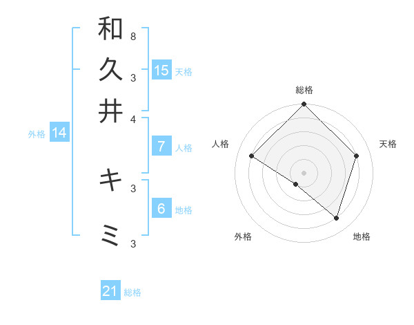 和久井 キミさんの総格は21画の5点!