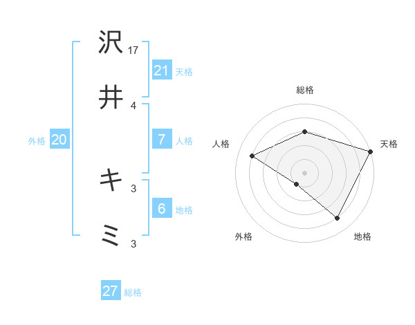 沢井 キミさんの天格は21画の5点!