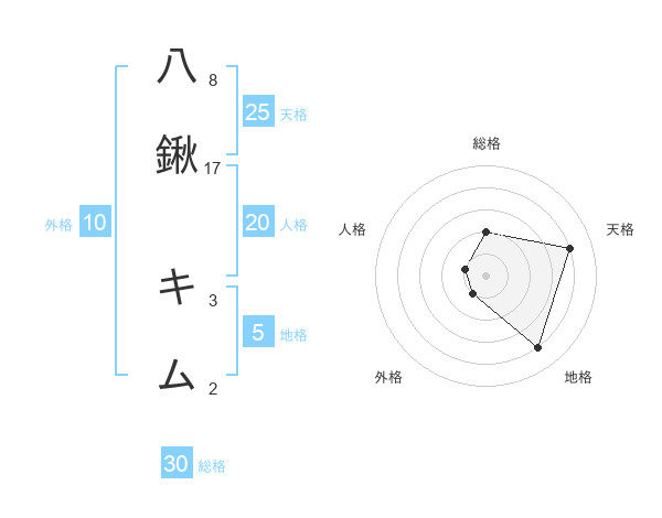 八鍬 キムさんの天格は25画の4点!