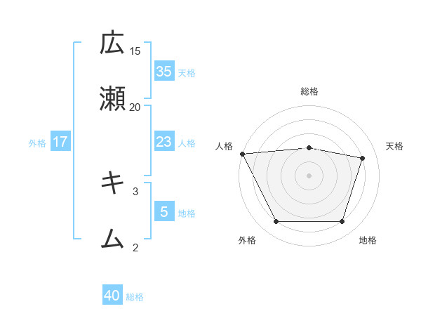 広瀬 キムさんを姓名の画数から五運を鑑定