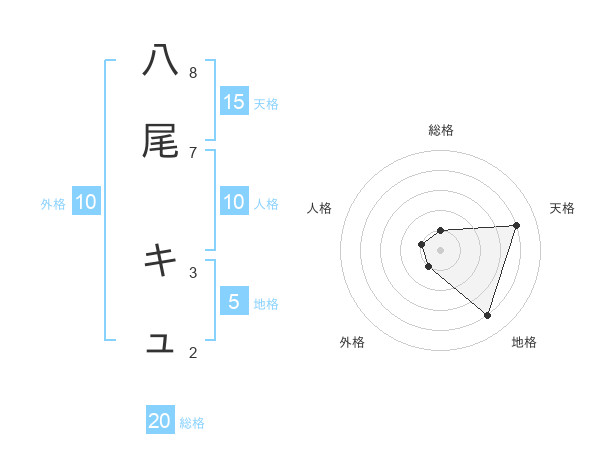 八尾 キュさんの天格は15画の4点!