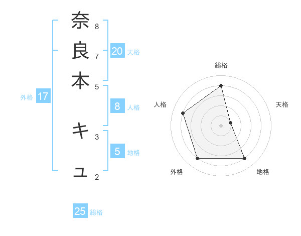 奈良本 キュさんを姓名の画数から五運を鑑定