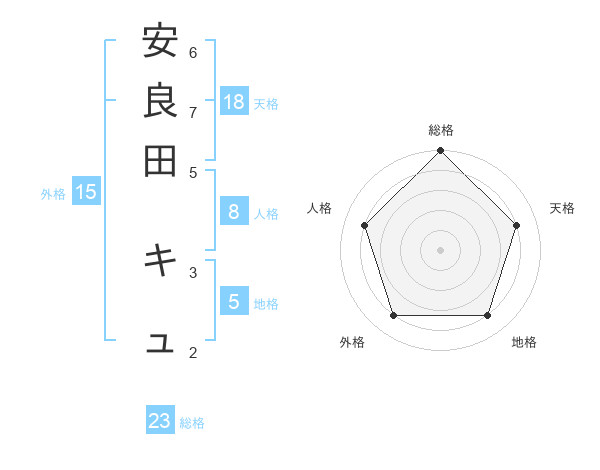 安良田 キュさんの総格は23画の5点!