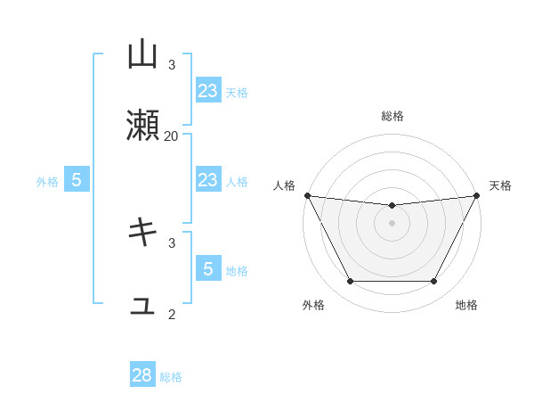 山瀬 キュさんの天格は23画の5点!