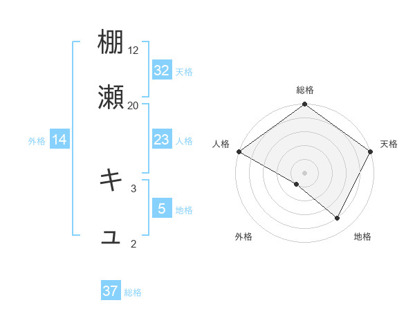 棚瀬 キュさんの総格は37画の5点!
