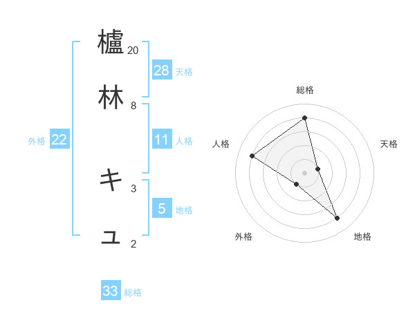 櫨林 キュさんを姓名の画数から五運を鑑定