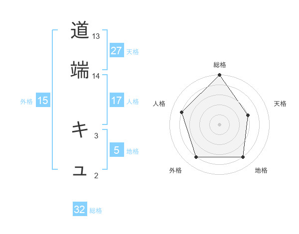 道端 キュさんの総格は32画の5点!