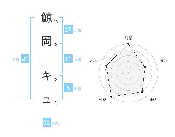 鯨岡 キュさんを姓名の画数から五運を鑑定
