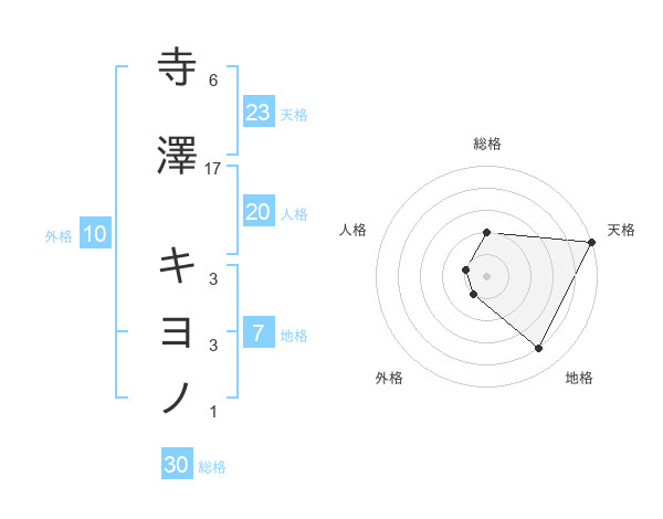 寺澤 キヨノさんを姓名の画数から五運を鑑定