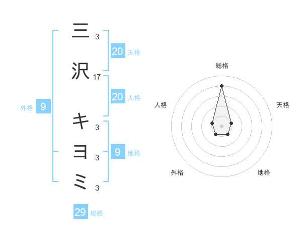 三沢 キヨミさんの総格は29画の4点!