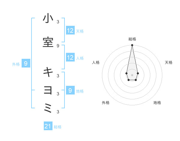 小室 キヨミさんの天格は12画の1点!