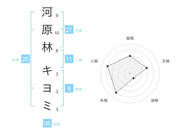 河原林 キヨミさんを姓名の画数から五運を鑑定