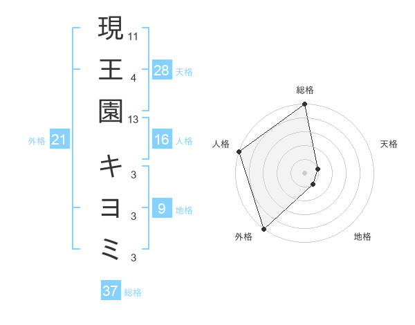 現王園 キヨミさんを姓名の画数から五運を鑑定